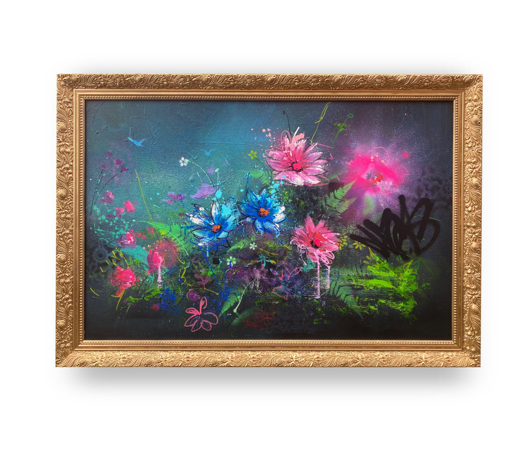 Beautiful chaos of flowers captured on canvas in an abstract form