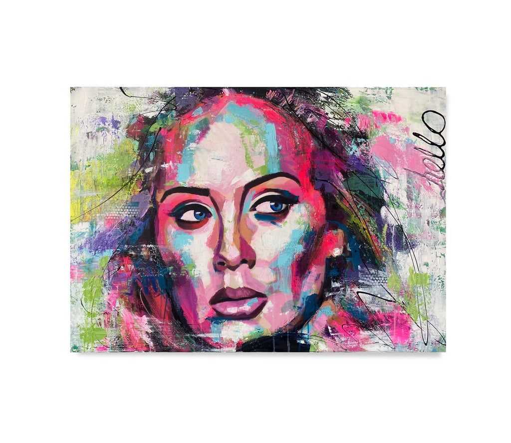 A textured acrylic painting of a British pop icon captured on canvas